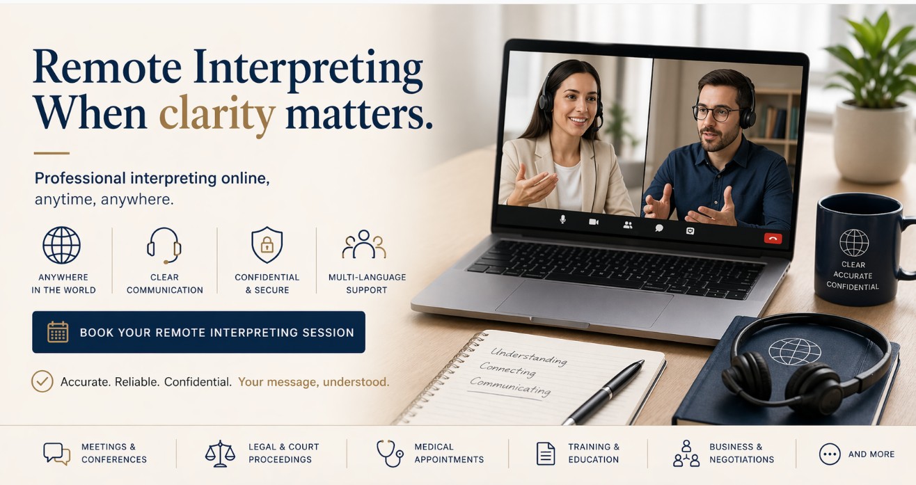 If you are organizing a legal or administrative meeting with multilingual speakers, remote interpreting can be arranged quickly and efficiently.